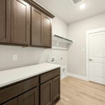 The suite conveniently flows into a large utility room with built-in cabinetry, enhancing daily efficiency.