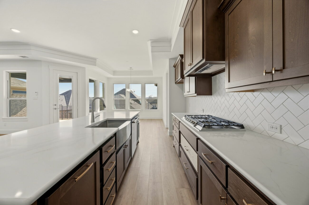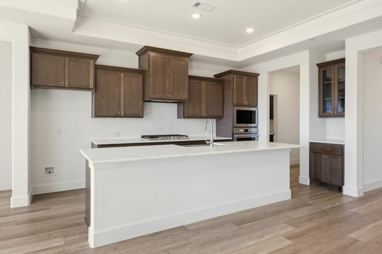 The gourmet kitchen offers abundant counter space and functionality—perfect for casual meals or preparing a grand feast. The open layout allows the kitchen to flow seamlessly into the main living areas, creating a welcoming environment for everyday living and special occasions.