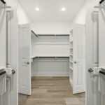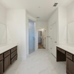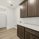 The suite conveniently connects to a spacious utility room with built-in cabinetry, creating a functional and efficient daily living experience.