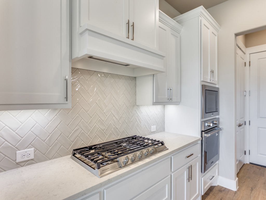 Upgraded appliances in the kitchen are framed by flawless upgraded cabinets and countertops, a beautiful tile backsplash and under cabinet lighting.