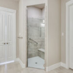 The study with glass french doors, offers privacy yet is centrally located to the rest of the home.
